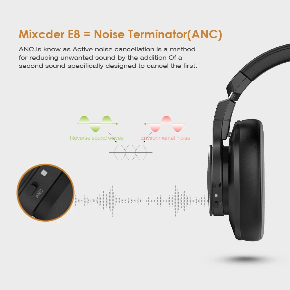 HIGH QUALITY Mixcder E8 Wireless Active Noise Cancelling Bluetooth Headphones with Mic Over Ear Headset with Dee